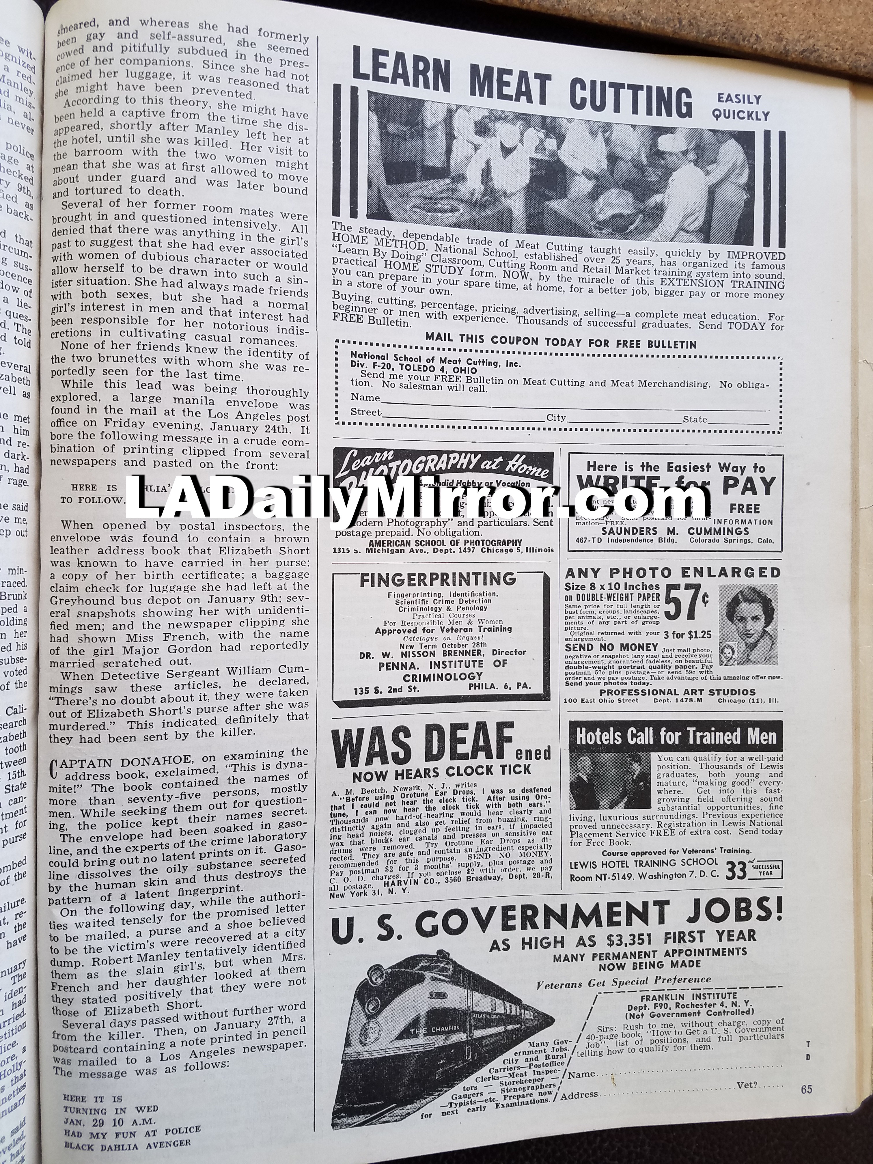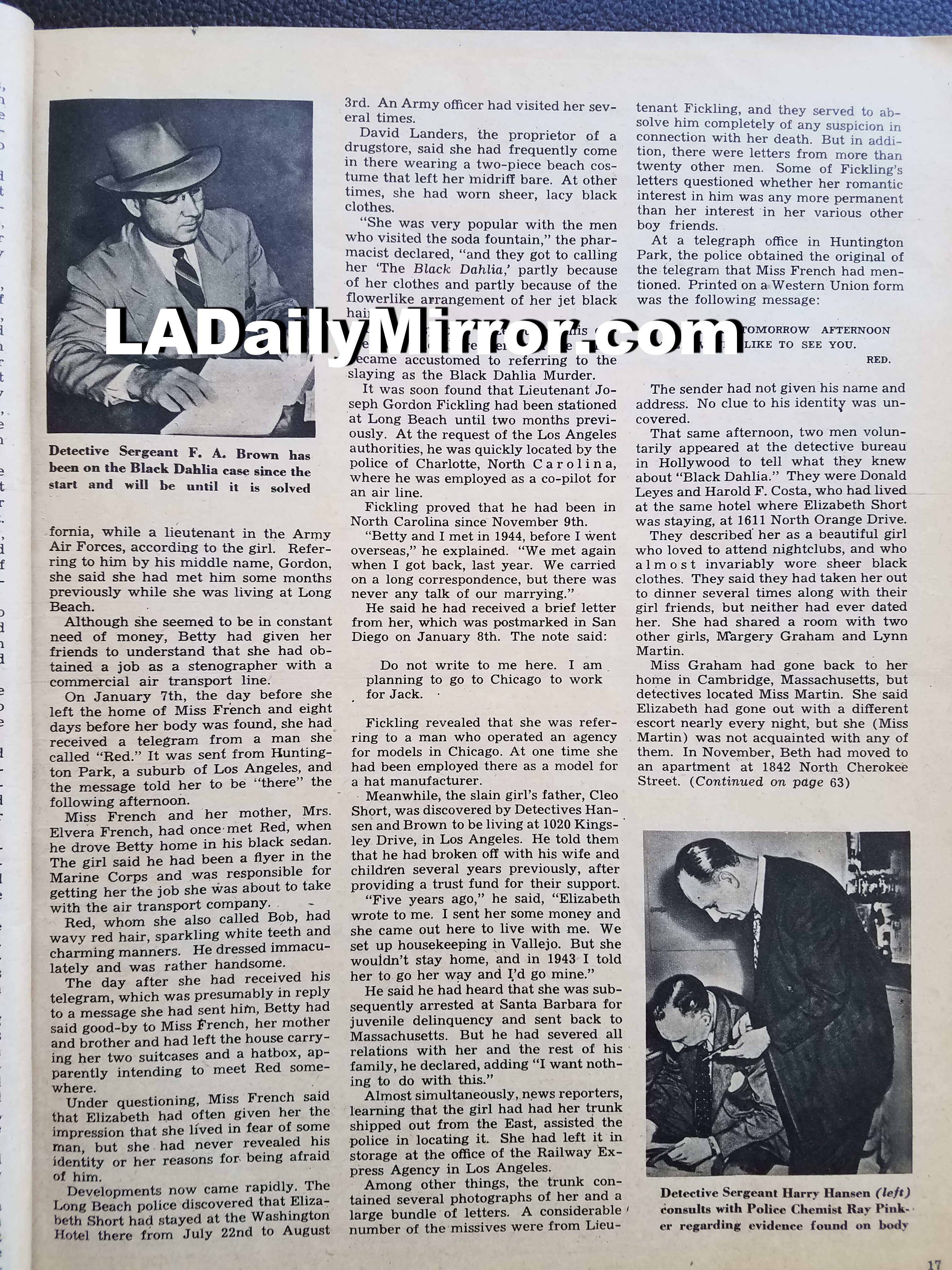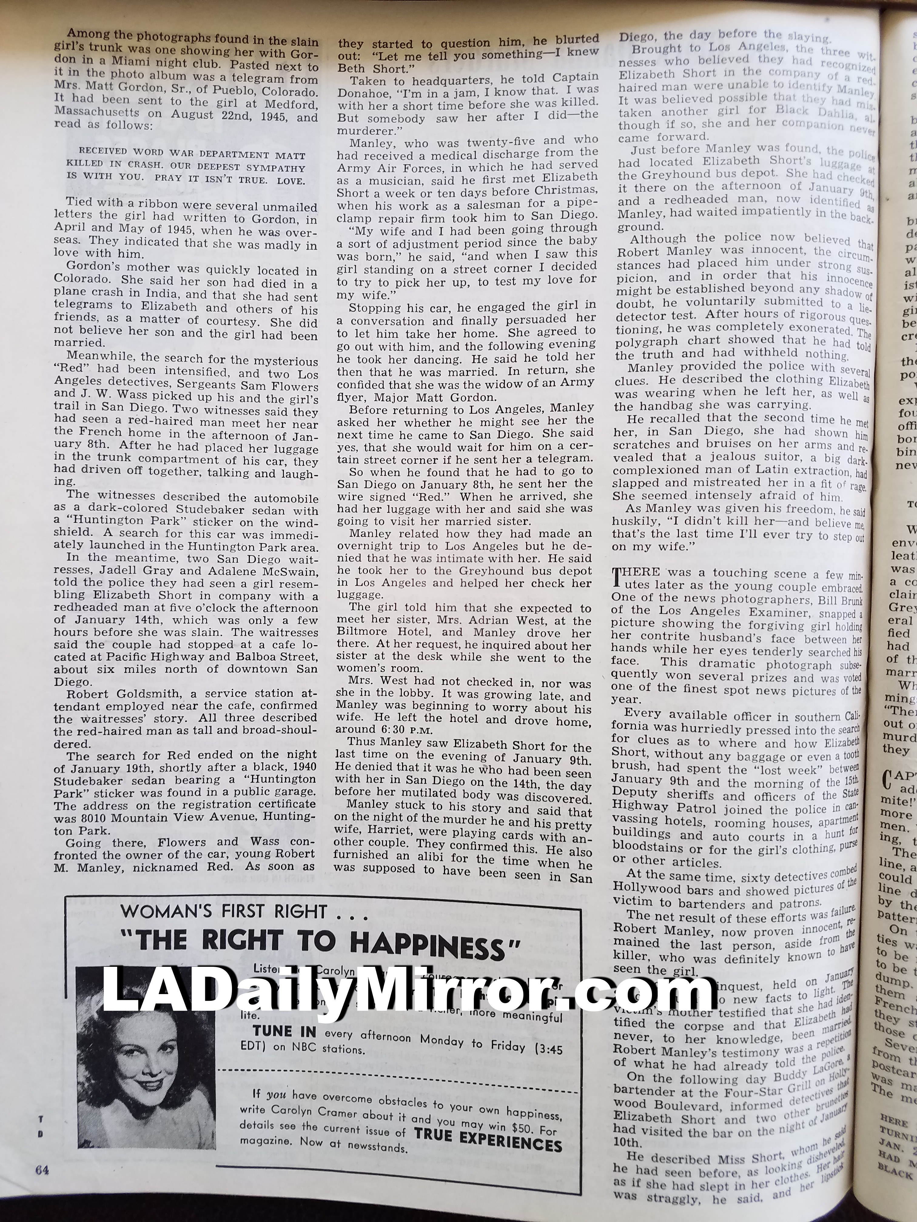 I’m going to begin with “The Black Dahlia Murders,” by George Clark, from the October 1948 issue of True Detective. This isn’t the first pulp magazine article about the murder of Elizabeth Short, but it is by far the most influential because it resulted in the Leslie Dillon debacle.
