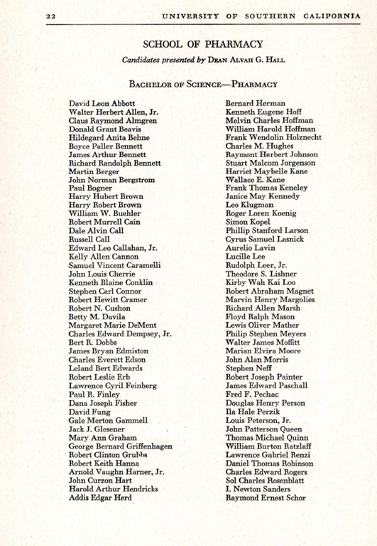 Marvin Henry Margolies, with the USC transcript, was born September 16, 1926, died March 28, 2006, and was issued SSN 568-20-3897 in California between 1936 and 1950. He is listed among the graduates from the School of Pharmacy in the 1949 commencement program.