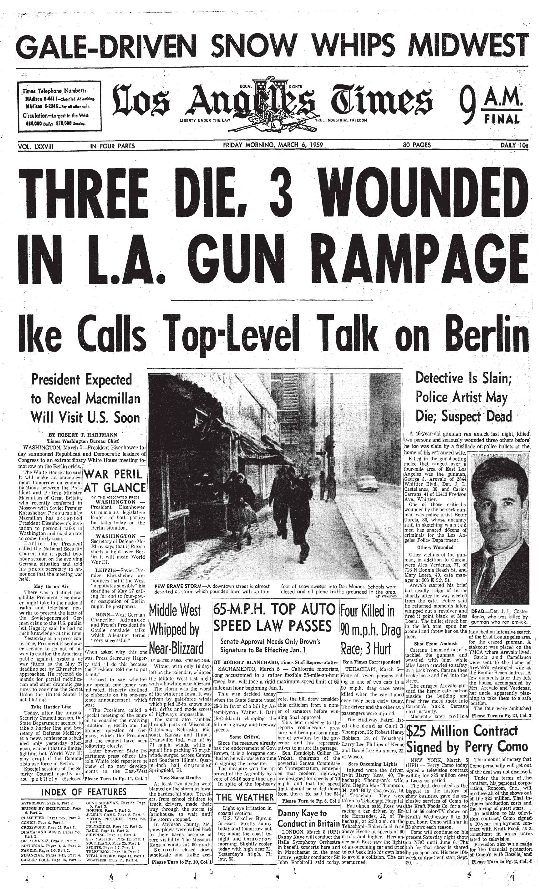 March 5, 1959, when they got a call that a gunman had gone on a deadly rampage at an East Los Angeles restaurant and was probably heading for the home of his estranged wife.